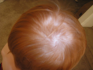 Ian after I took Mark's trimmers to him...you can still see the bald spot in front but not quite as bad. Ian's actually loving this new doo. Maybe I should just save the money and buzz all the boys as needed LOL